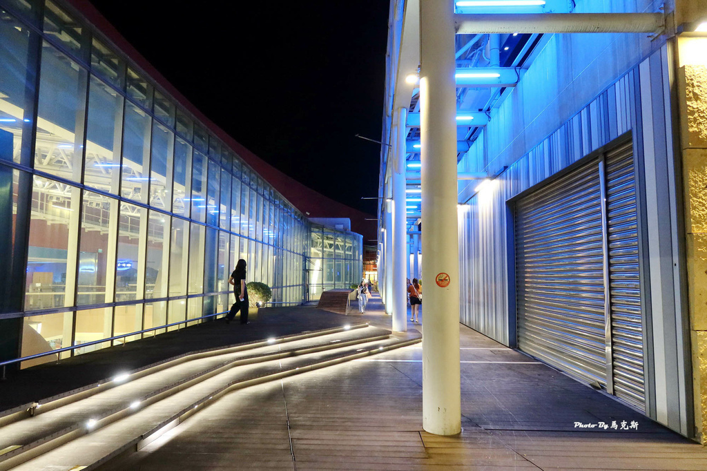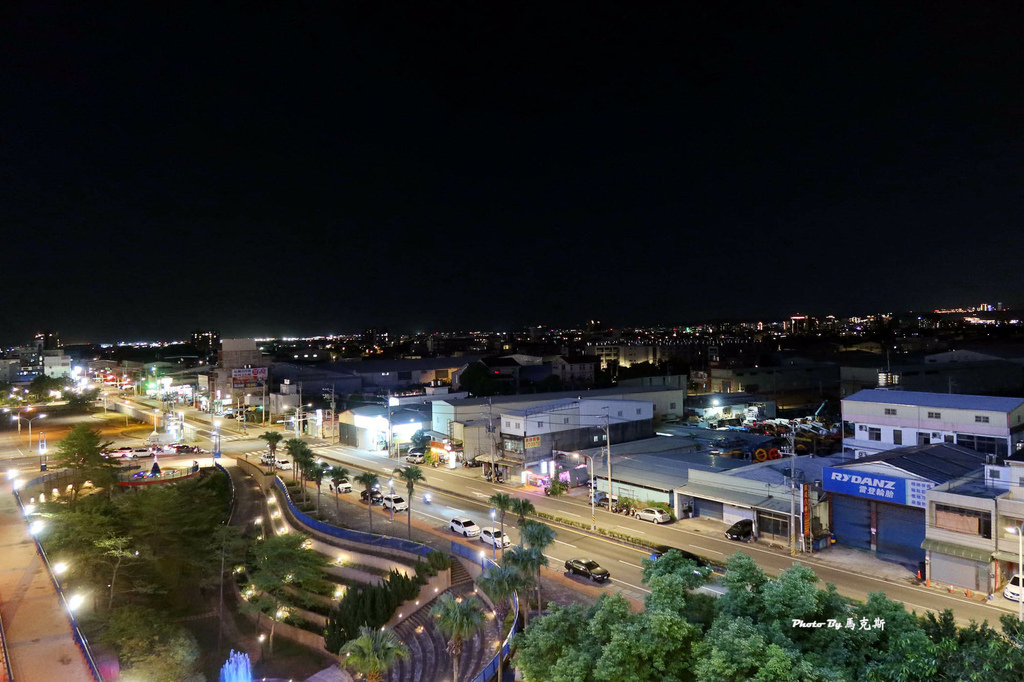 晚上的戶外空中廊道,適合桃園情侶約會打卡點,遠方就是桃園中壢景色。