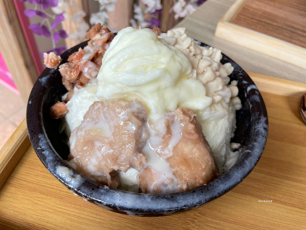 雪花冰綿細,有著牛奶的奶香味,煉乳香甜恰到好處不死甜。