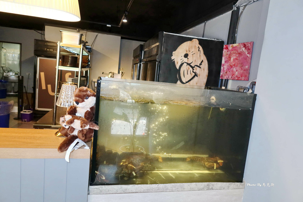 進來後有座位等候區,櫃台旁的水族箱內是活體波士頓龍蝦。