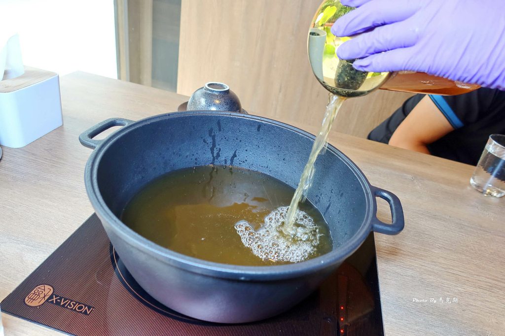 服務人員會過來將湯頭倒入鍋中,並開啟電磁爐等待煮沸。