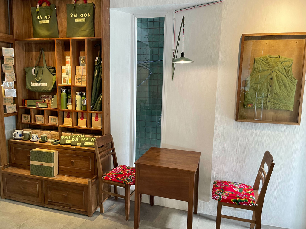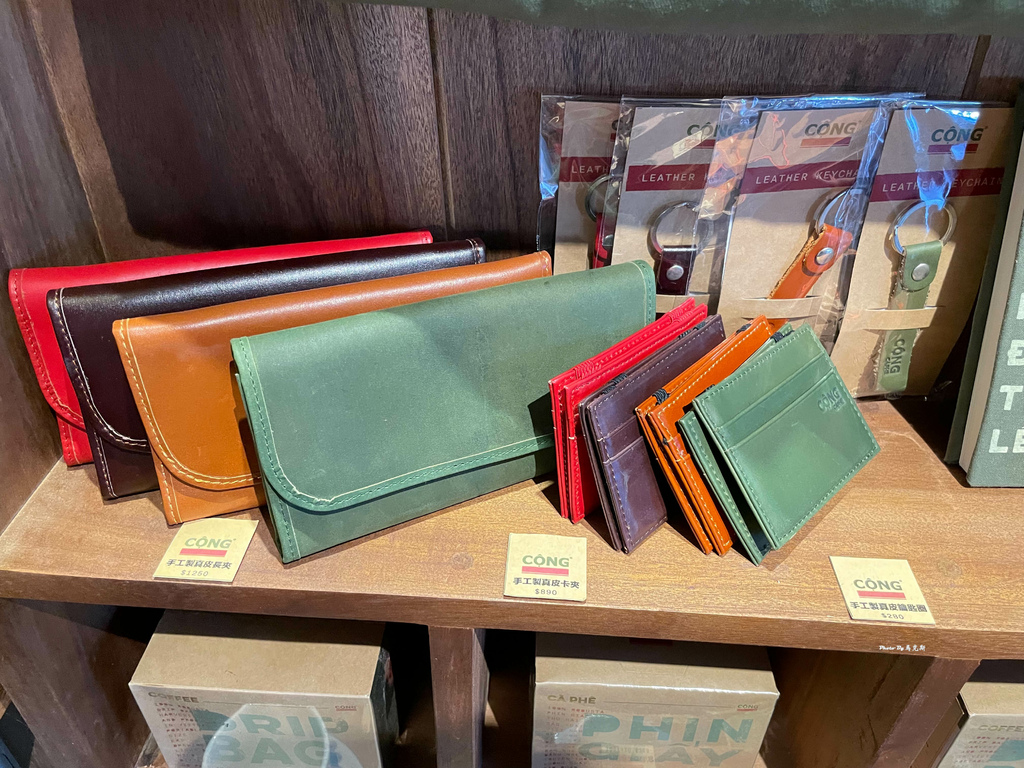 1樓有賣越南城市托特包、煙灰缸、咖啡豆、不鏽鋼保溫瓶/咖啡濾壺、手工陶瓷杯盤組、濾袋咖啡、傘和茶包等,有興趣的價格都清楚寫在上面。