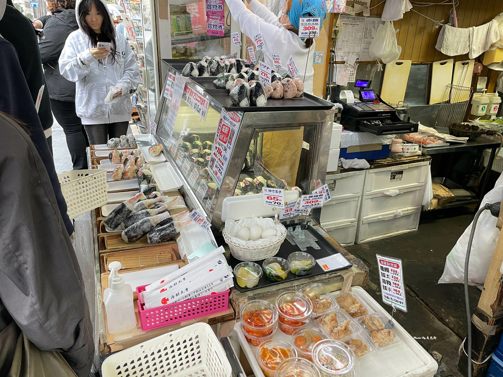 是築地市場超人氣老字號御飯糰專賣店,當天排隊人潮很多,但消化的速度也快。