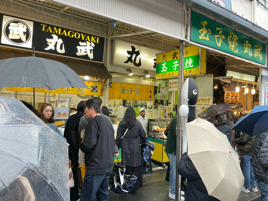而來到築地場外市場一定不能錯過丸武玉子燒。