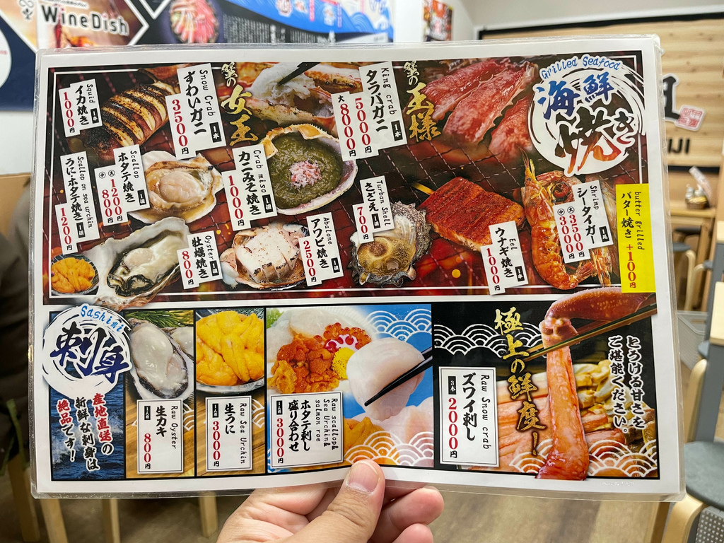 有各種海鮮、鰻魚和海鮮丼飯等,點完餐後會給你一張餐點明細。