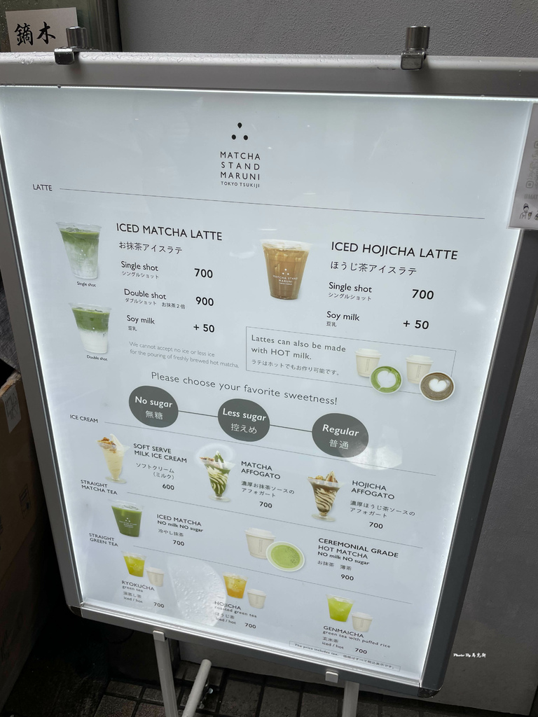 排隊時可以先看看MATCHA STAND MARUNI東京築地的菜單價目表。