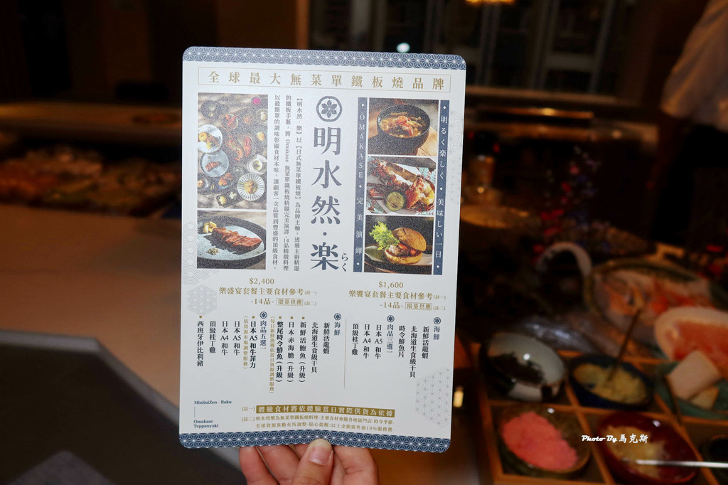 明水然樂標榜日式無菜單鐵板燒,透過主廚精湛的鐵板手藝,將Omakase無菜單鐵板燒精髓完美演譯。