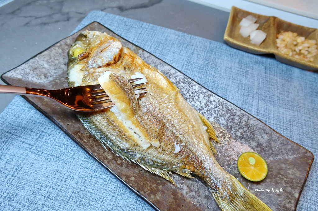 今日現流魚是黃鰭鯛,煎到魚皮香酥有焦香,魚肉鮮嫩細緻多汁,完全無腥味。