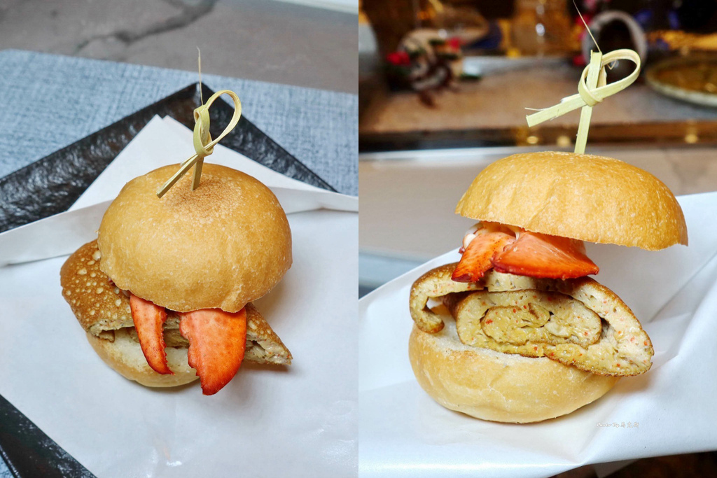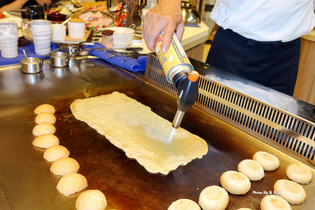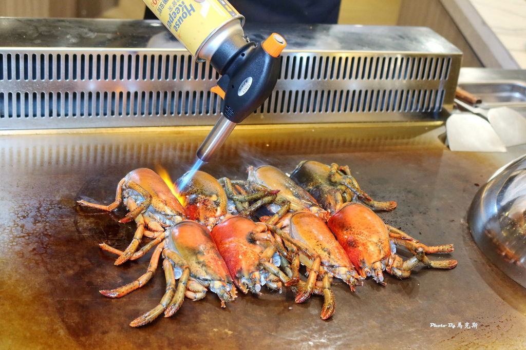 麵包是特地請廠商做的,放在鐵板上煎過,同時會製作龍蝦膏蛋捲,會以炙燒方式。