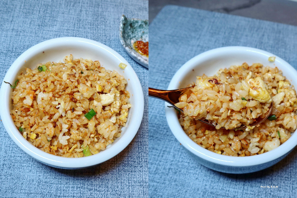 炒飯有蔥花、嫩蛋、洋蔥和飛魚卵,吃起來有著醬油香古早味,飛魚卵微啵啵口感來的有層次,美味。